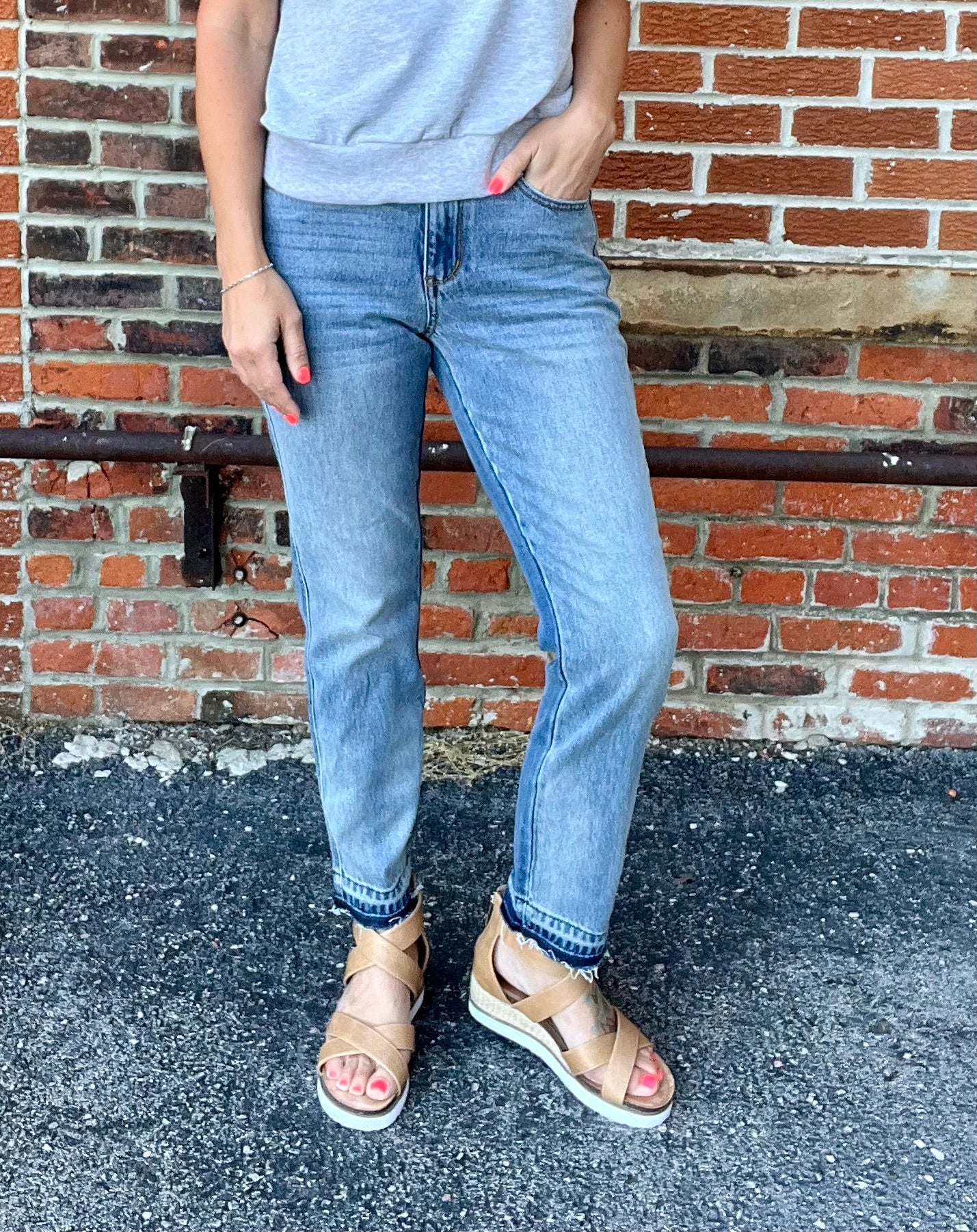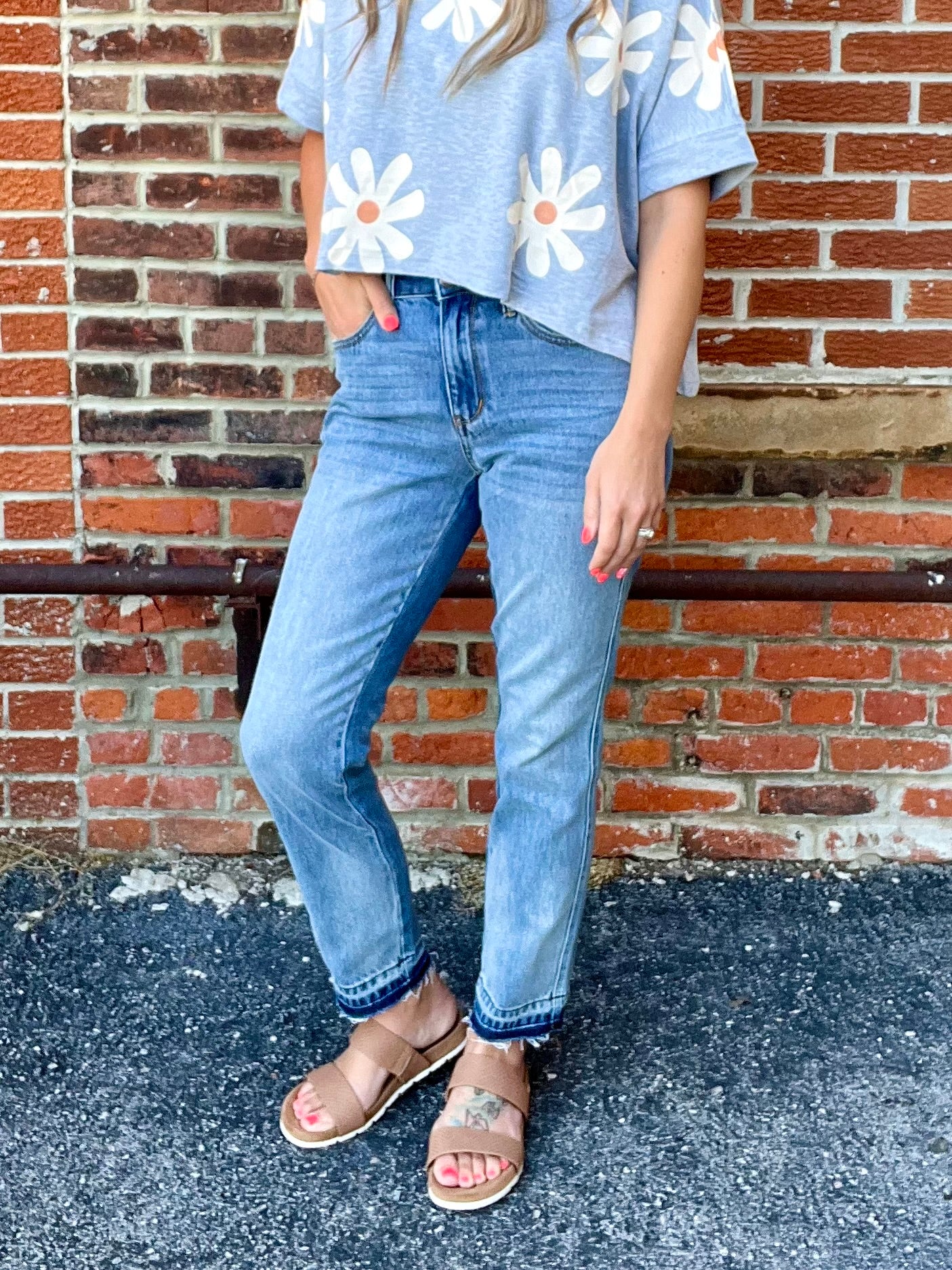 Introducing our mid-rise Judy Blue jeans in a classic medium blue wash, designed with a unique combination of a rigid front and stretchy material for ultimate comfort and style. These jeans offer a flattering fit that contours to your shape while providing ease of movement, making them a versatile staple for any wardrobe. Perfect for dressing up or down, they effortlessly blend timeless design with modern functionality.