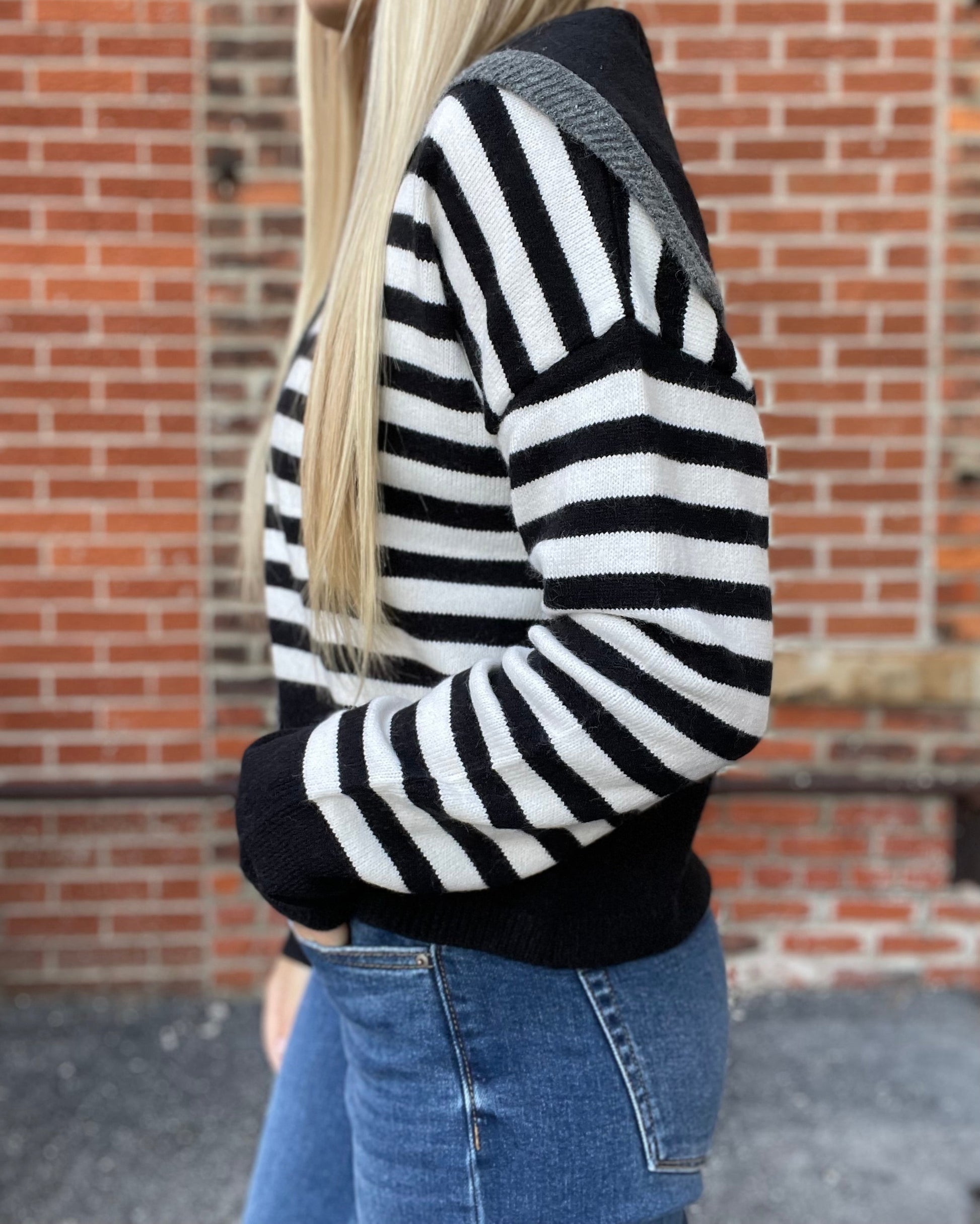 This striped sweater knit cardigan features a classic sailor collar, button front details, and a cozy, soft feel. Perfect for casual days or a night out, it blends comfort with effortlessly chic style.