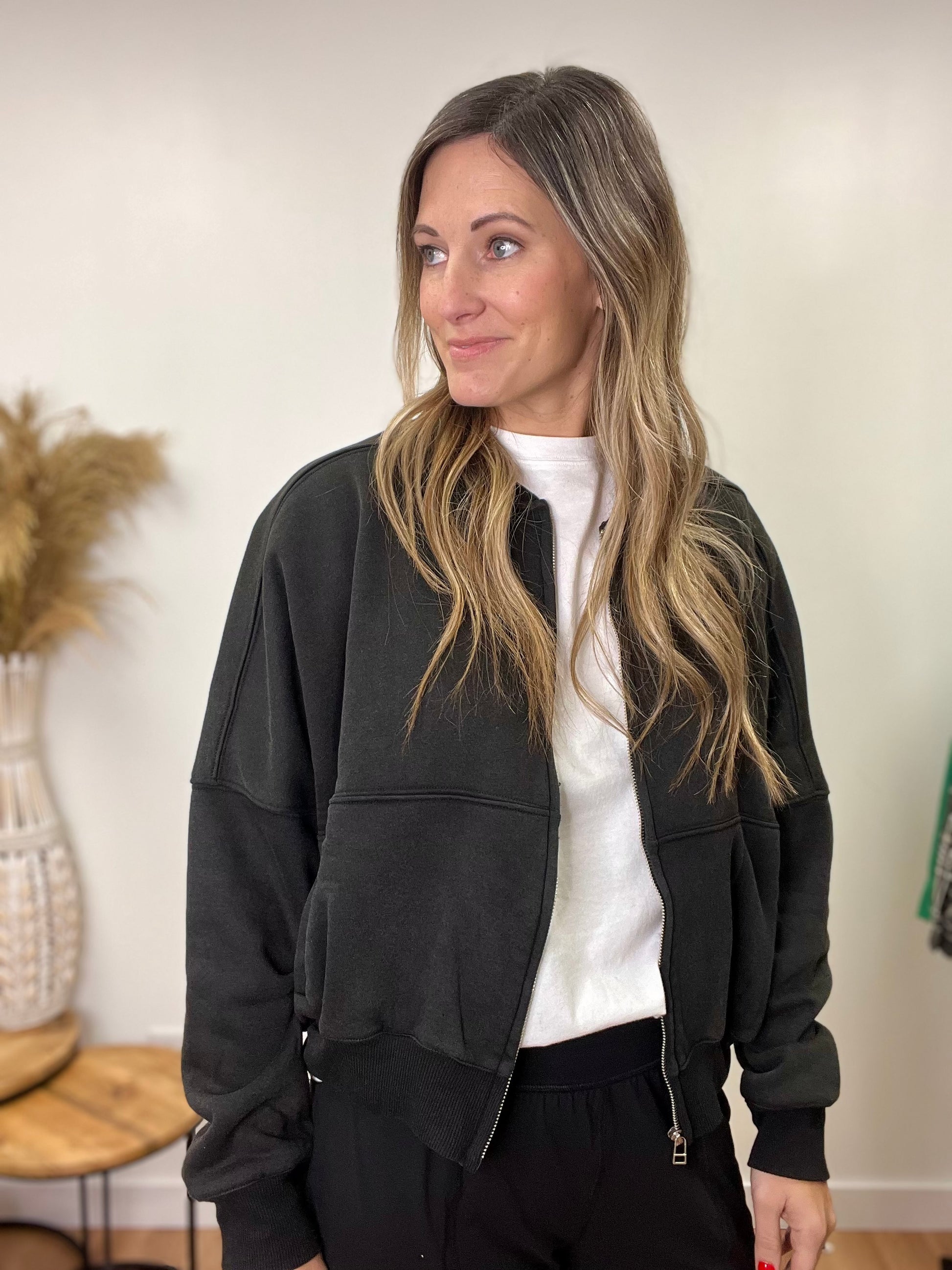 Upgrade your wardrobe with this stylish mineral wash jacket, featuring a unique textured finish for a vintage-inspired look. The front showcases soft terry fabric, adding a cozy yet refined touch, while the durable metal zipper enhances its rugged appeal. Perfect for layering, this jacket combines comfort and edge, making it a versatile statement piece.