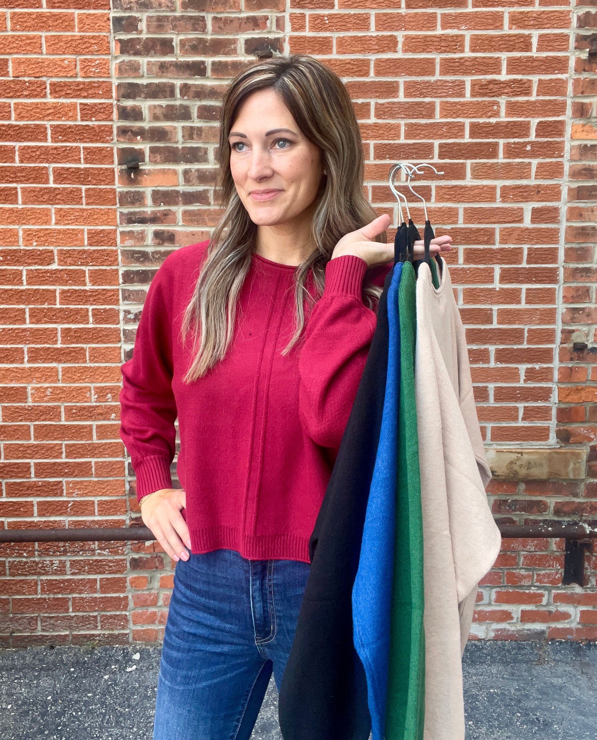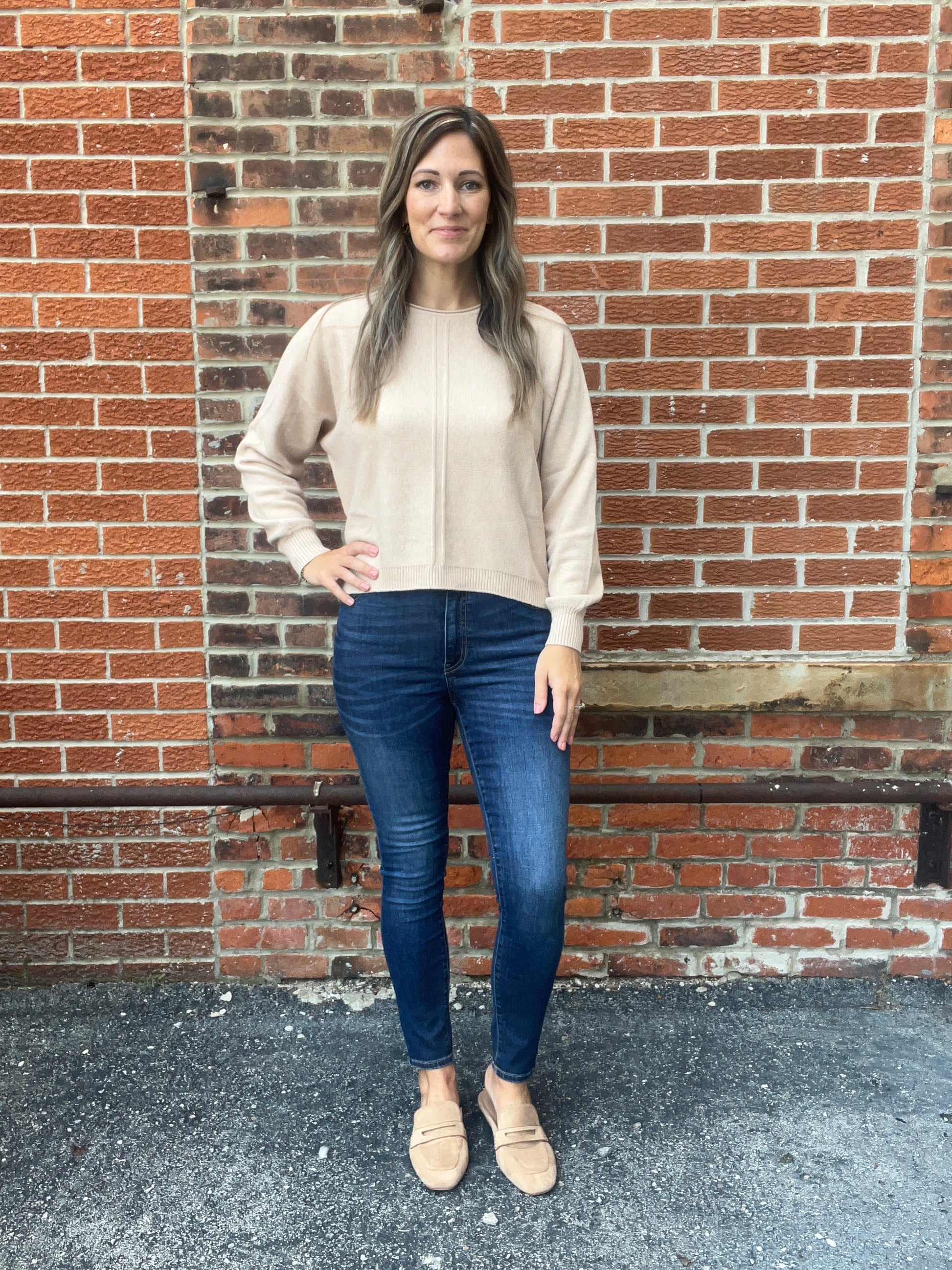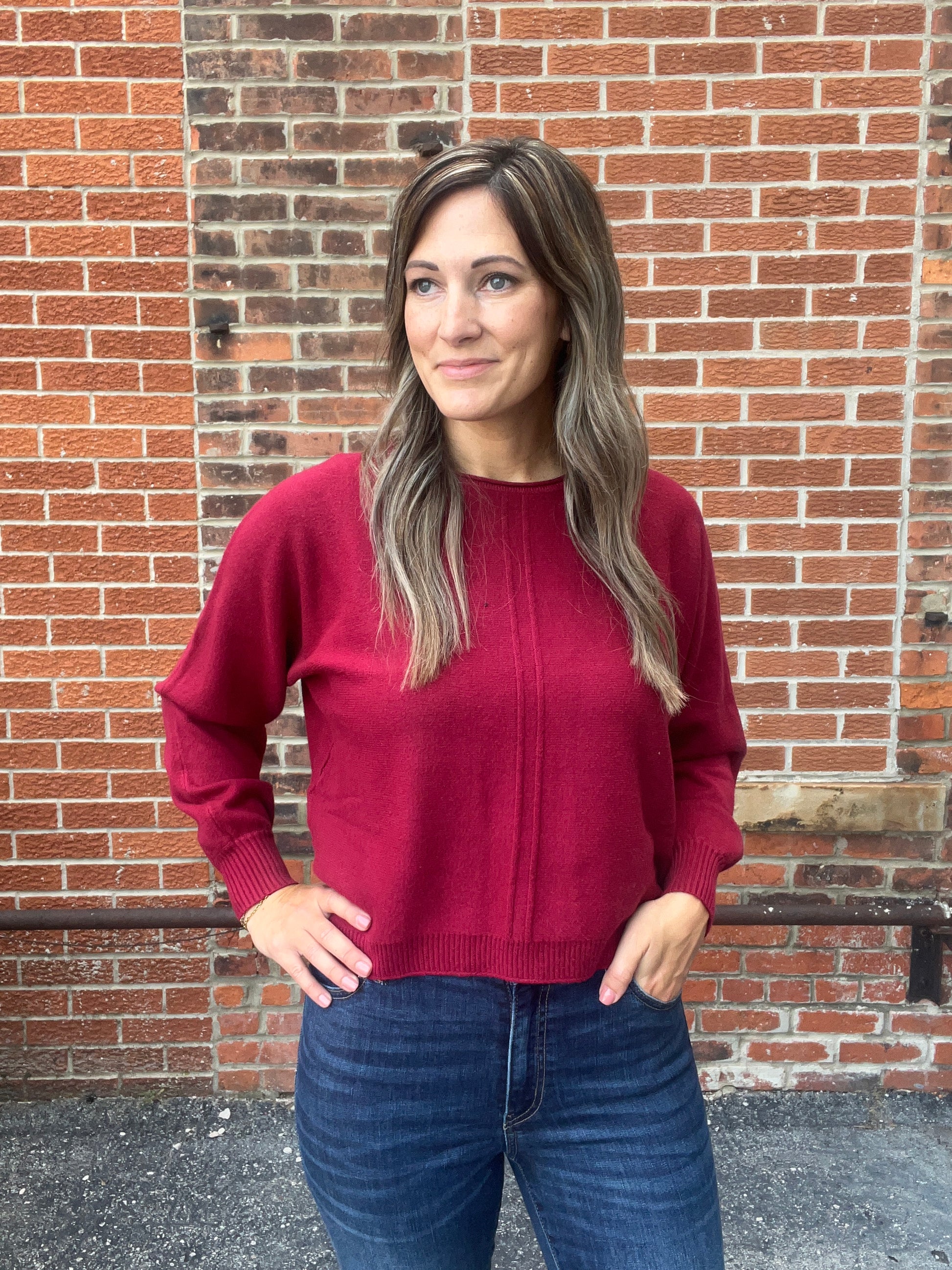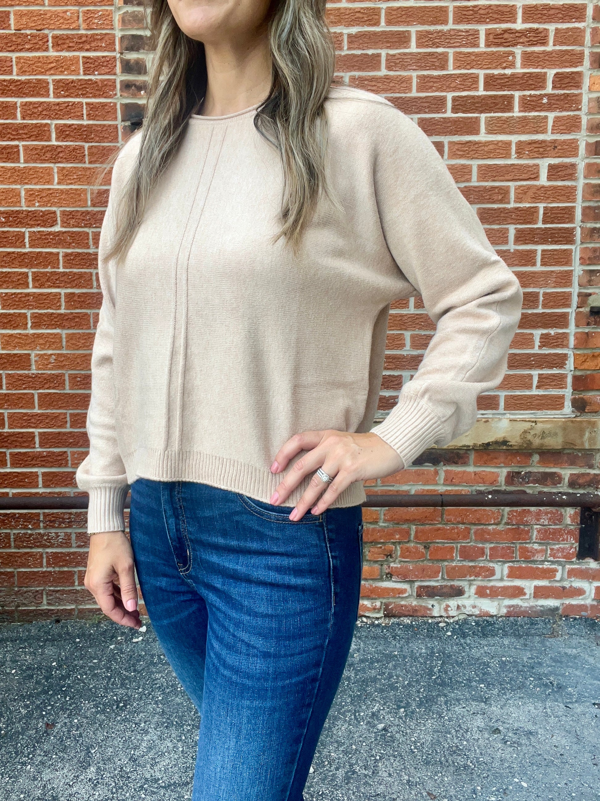 This lightweight sweater features a soft, rounded silhouette with a flattering high-low hem. Made with subtle ribbed detailing and a front seam for added texture, it’s finished with a round neckline and long sleeves. An easy, everyday piece with a relaxed, polished feel.