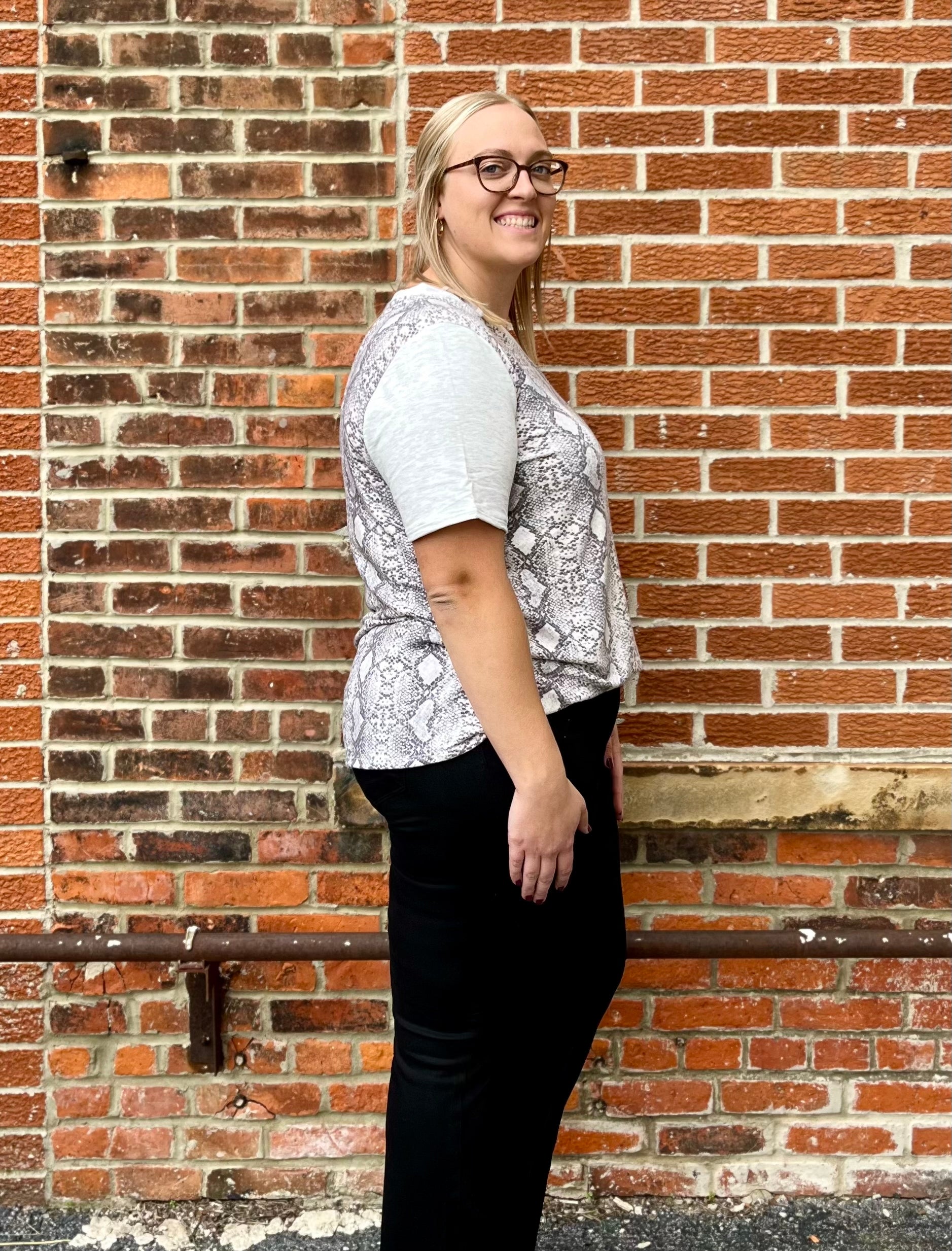 Solid Black High Rise Crossover Loose Ankle Skinny Jean.