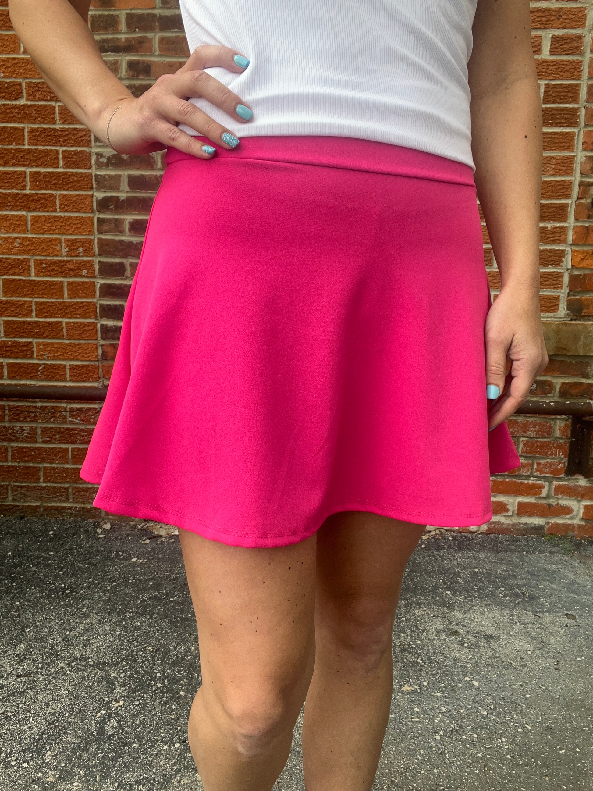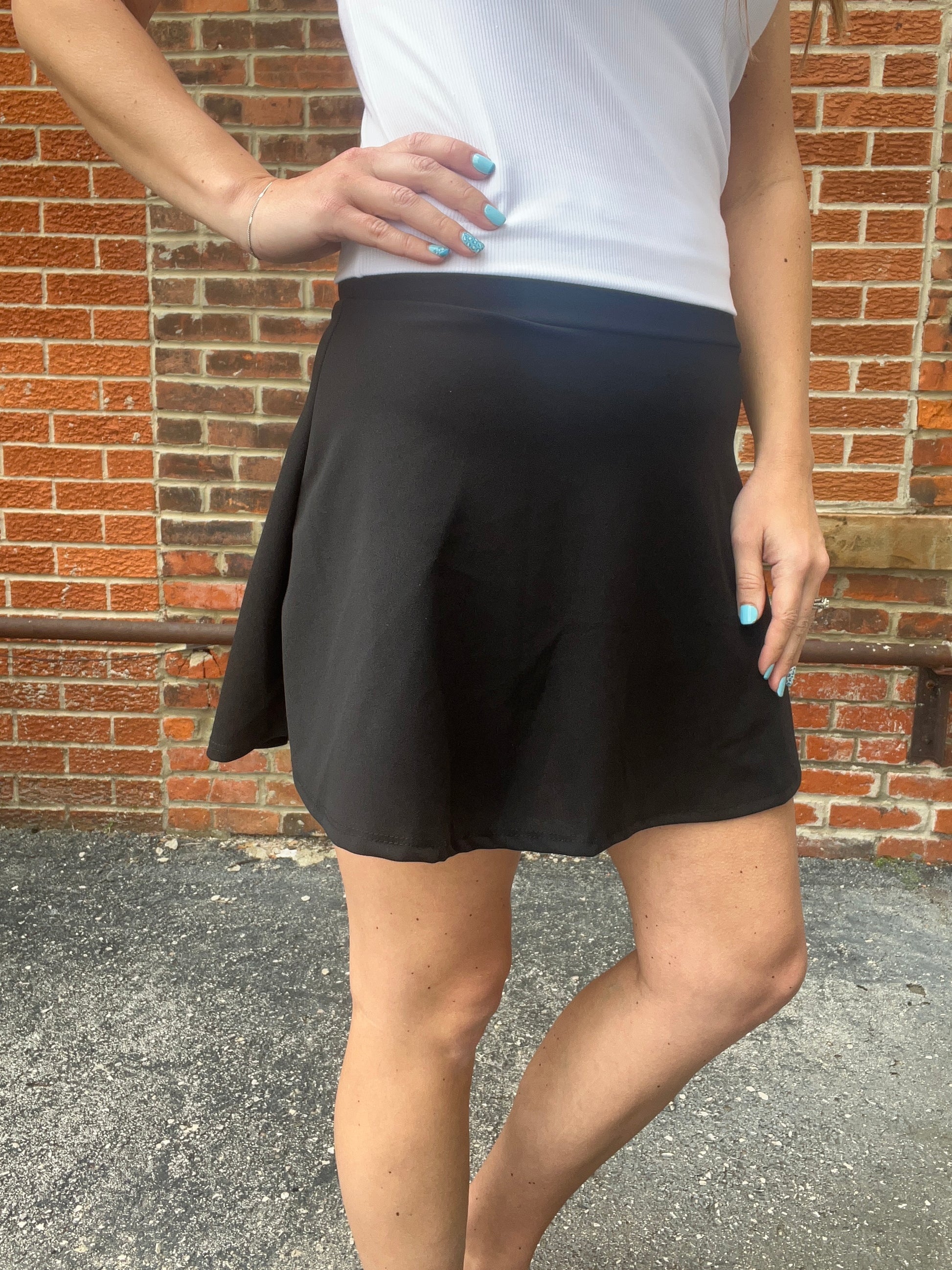 Stay active in style with this solid sport skort featuring a wide elastic waistband for a secure, comfortable fit. Designed for movement, it offers a sleek silhouette with built-in shorts for coverage and confidence. Whether you’re on the court, at the gym, or running errands, this skort keeps you looking sporty and chic.