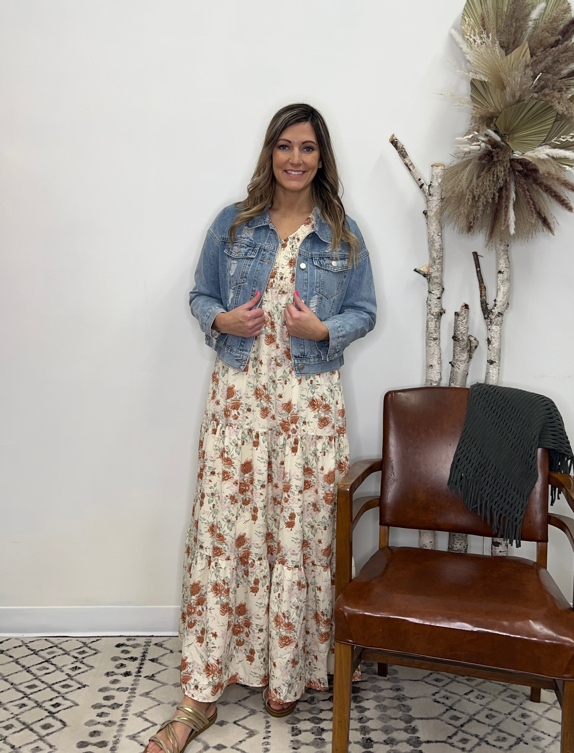 The Pictures Do Not Give This Dress Justice… It’s So Pretty!! The Vintage Cream Maxi Dress Features Tiered Skirt, Smocked Bodice, V-Neckline and long sleeve elastic wrist.