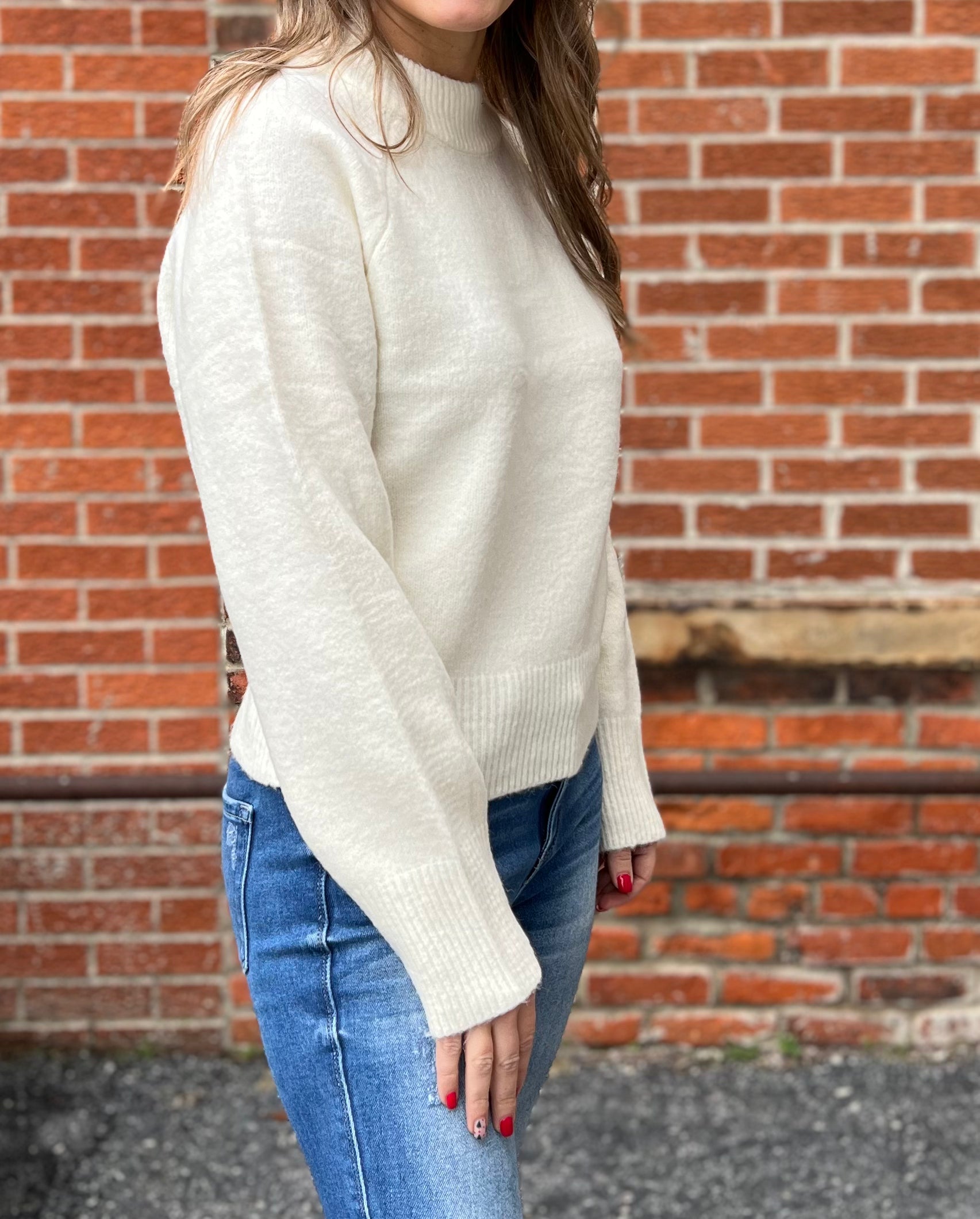 Super Soft Short Sweater with Bottom Ribbed Detail and Thick Round Neck