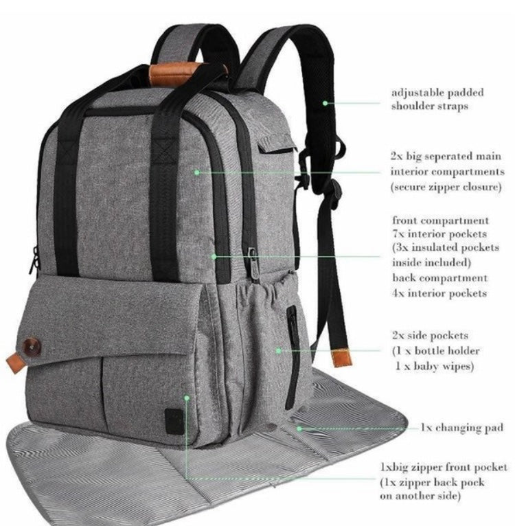 Trendy X-Large Diaper Bag Backpack. Perfect For Moms And Dads! Making It Easy For Day To Day Activities, Comfortable And Sleek Style.