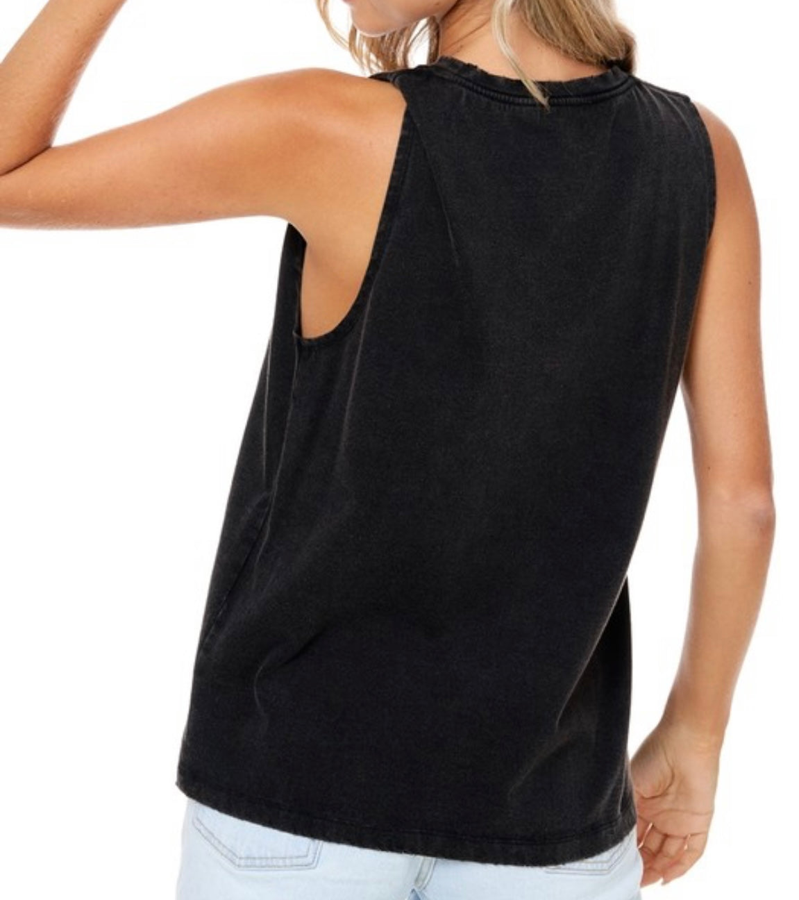 Channel your bold, untamed spirit in the Wild & Free graphic tank. This mineral washed piece delivers serious Americana vibes with its distressed bull skull, waving U.S. flags, and trio of blue stars. The red, white, and blue lettering pops against the charcoal background, giving it a vintage worn look that’s made for summer days, rodeo nights, and everything in between. With a comfy, relaxed fit and classic round neckline, it’s the perfect tank to throw on with denim and boots or layer up for a country chic edge.