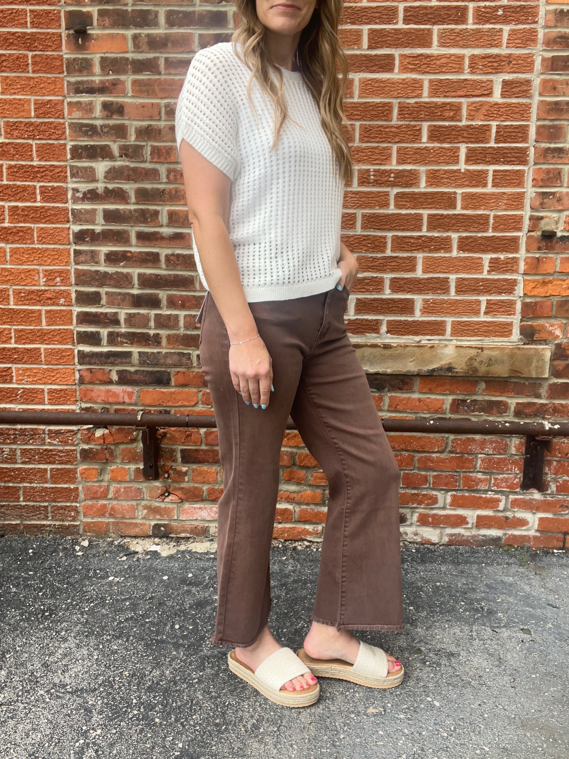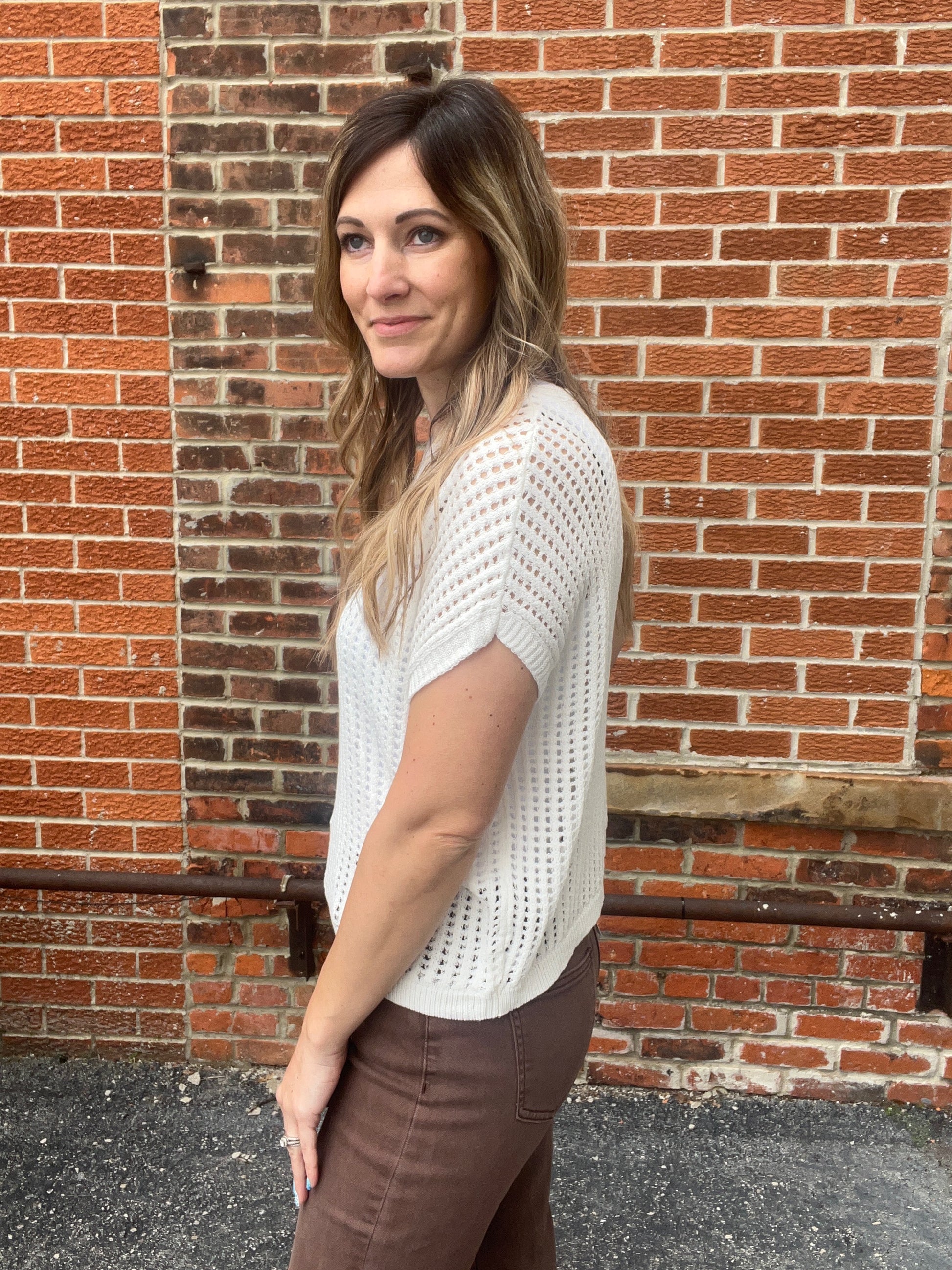 This knit drop short sleeve top features a relaxed fit with a round neckline and lightweight, semi sheer fabric that adds an airy, effortless vibe. The see through knit makes it perfect for layering over a cami or bralette, adding texture and dimension to your outfit. Ideal for warm weather or stylish layering, this top combines comfort and versatility with a modern, breezy look.