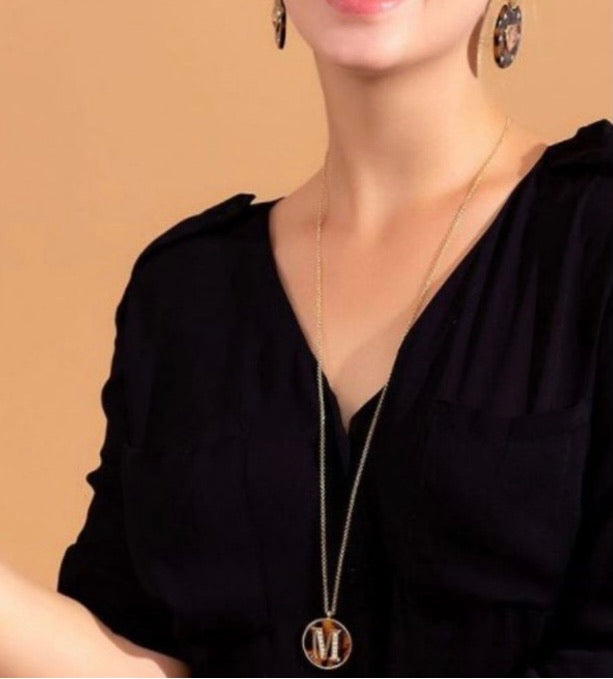 Tortoise Initial Long Necklace