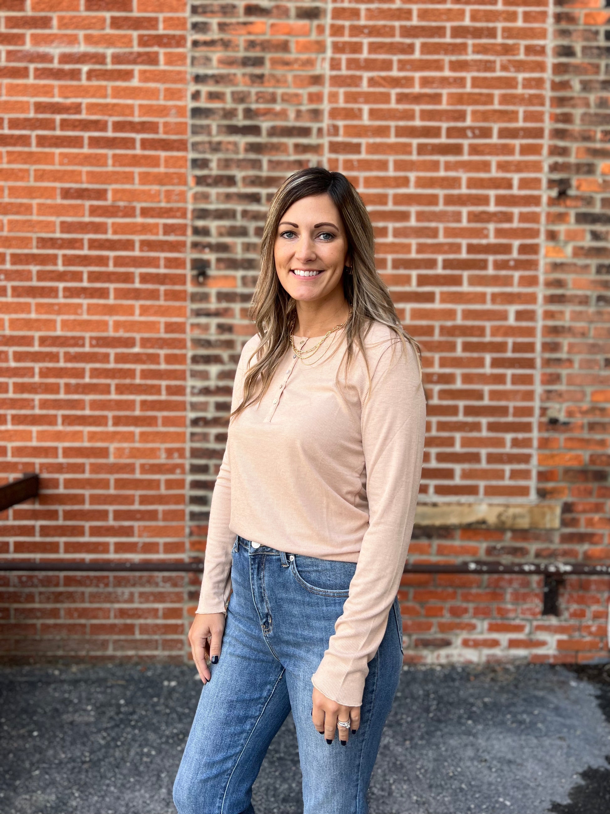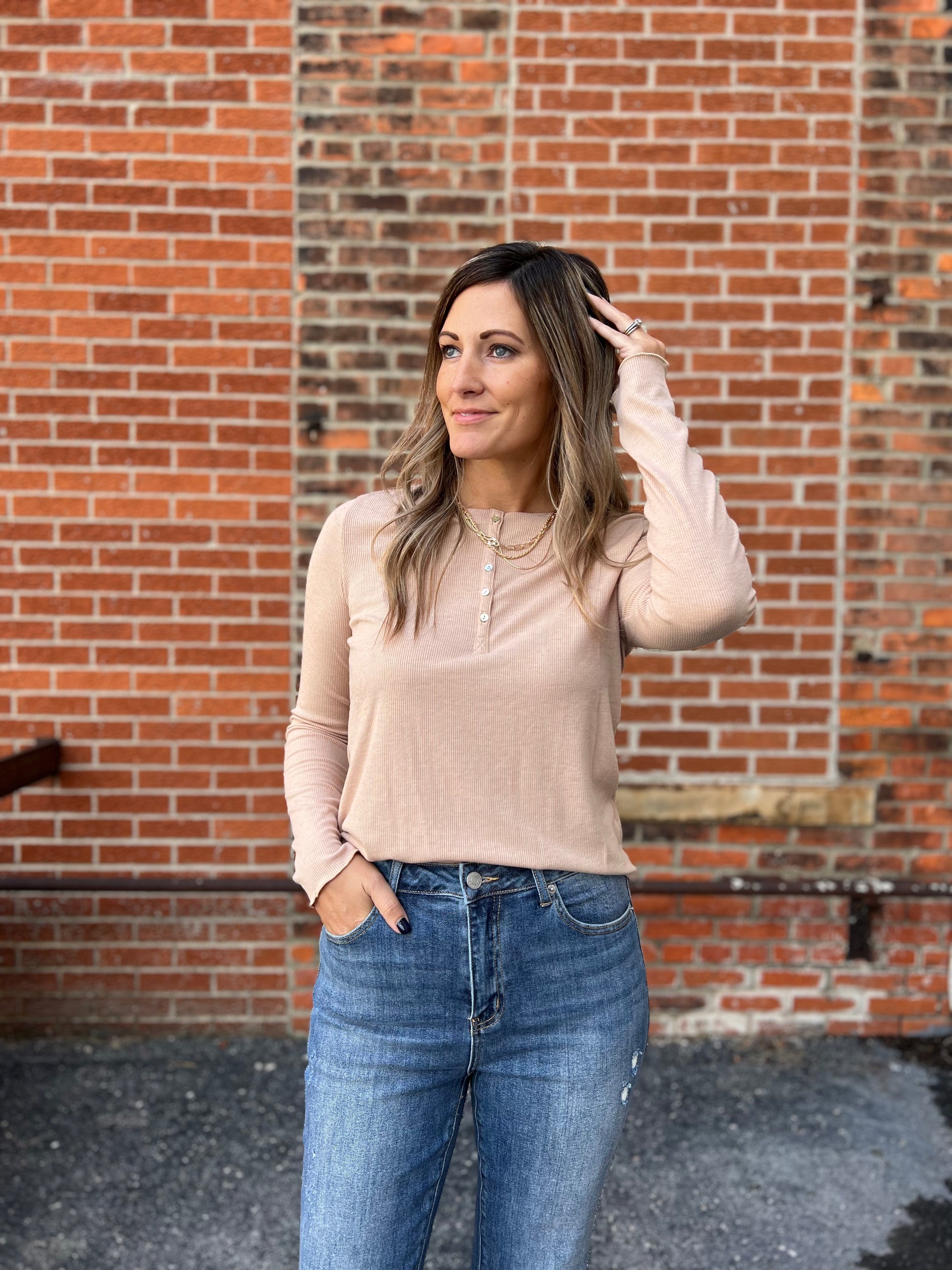 This Long Sleeve Taupe Lightweight Top Is A Great Layering Piece For The Cooler Days Ahead.